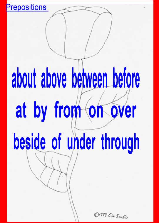 A preposition can also be determined by the way it is used. The sentence read " Bob wants to go to the mall." The part "to the mall" you knowtest, has the preposition to in it ,right! What we see is a phrase. A phrase is a group of words. "to the mall" is a group of words as you can see. This is called a prepositional phrase, why, because it starts with what- the preposition to. Therefore, we can often tell a preposition by recognizing this kind of phrase, so let's example a prepositional phrase more closely. " To" is a preposition, "The mall" is a noun. When you take a preposition and add a noun or pronoun after it you will make a prepositional phrase. Let's see………. Take the preposition in, let's add the noun the shop, now we have in the shop. Is that a prepositional phrase . Does it start with a preposition and has a noun after it. In the shop………. Yes it is a prepositional phrase, it has what it needs to have in it.
