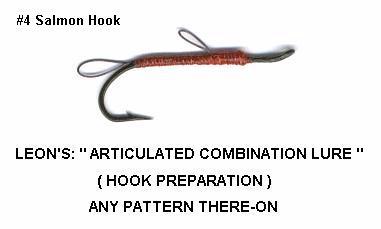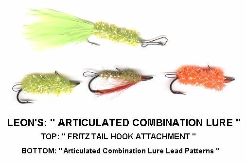 More Notes From Leon: I had forgot to mention the fact that I have constructed the photo's sent to show all aspects of the Articulated Combination Lure so that viewers can understand the build. A lot of the Front Lead Patterns have tails of various material that obscure the link at the tail of the lead pattern with the loops and sometimes has marabou tied on top of the Lead pattern behind the hook eye, thus also obscuring the link on top.