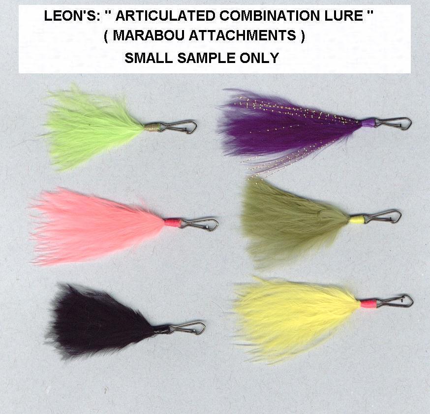 Rather than send a pattern, Leon found it easier to describe his articulation method better with images. Click on the links below.[ Tying The Loops on the Hook |Hook Preparation | Lead Patterns| Sample Marabou Attachments | Various Hook Combinations ]