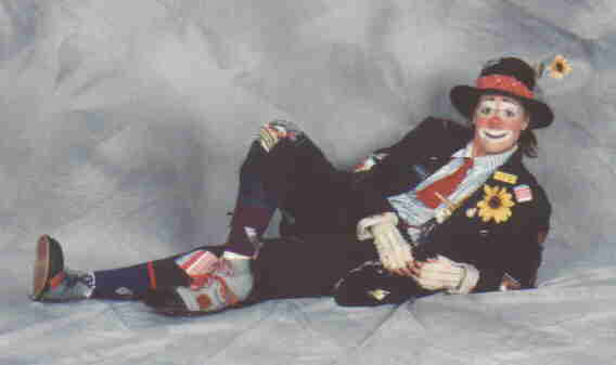 Shadows alter ego, Kathy, has a BA in Education, Early Childhood Emphasis, and works as a high school secretary. She has an extensive sports background and enjoys doing a variety of things, from skiing to singing, when not clowning around (in makeup!). She is also continuing as President of Cascade Clowns of Washington State for 1999.