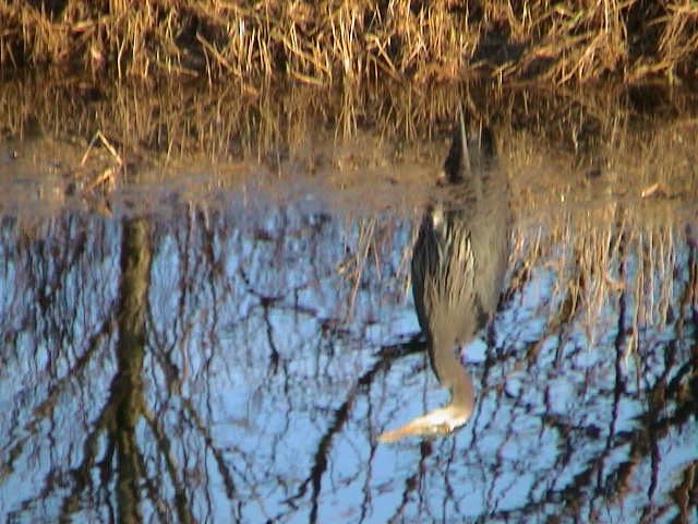 Great Blue Herons are a common sight in marshes and waterways throughout the US and Southern Canada. They are the largest of all the New World Herons and Egrets, and are often misidentified as Cranes because of their large size. It stalks for prey on land and in the water. It mates for life and only when one dies will they search for another. When eating they like to be close to the water to catch fish. When the water is low they are resting or feeding there young. They walk in the water to search for small fish. The best time to view them is at sunset and when the water level is low. !!CAUTION!! Approach Slowly when taking Pictures.