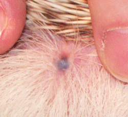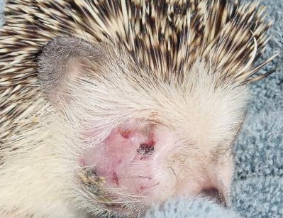 The next 3 photos show bites on one of my own hedgehogs, Miss Heidi. We believe they are spider bites, and