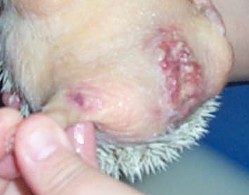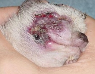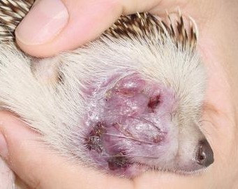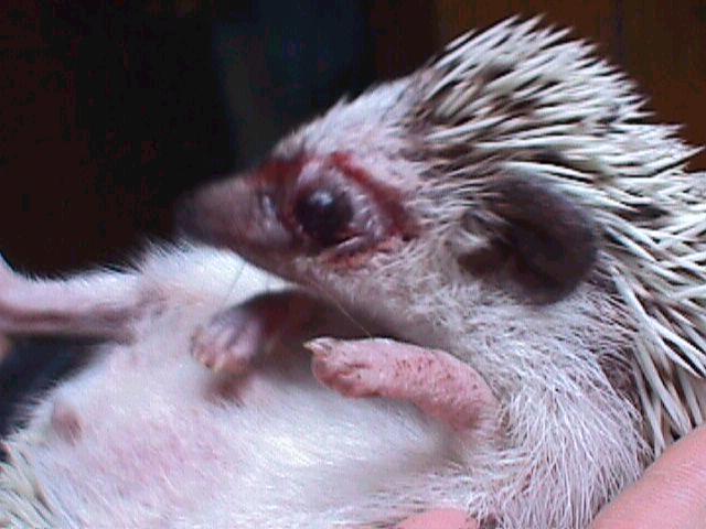 The next photo of "Bug" the hedgie, shows what the Vet believed to be an ulcer developing around the eye, which
