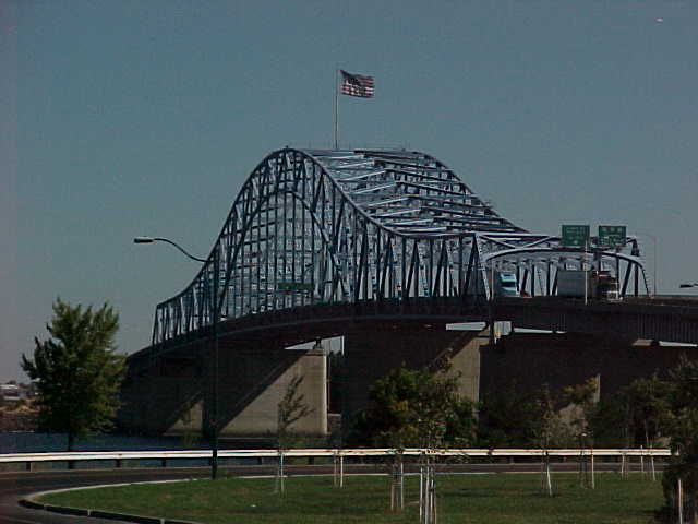 The Blue Bridge, completed circa 1953, was the second highway bridge to cross the Columbia River in the Tri-Cities area. The first bridge, completed in 1922, was about a mile downstream, closer to downtown Pasco and Kennewick. US 410, renumbered US 12 in 1967, was shifted from the old bridge to the Blue Bridge. I think that the Blue Bridge was originally painted the standard green color used for steel highway bridges in Washington State. The bridge was repainted blue sometime in the 1970s or 80s. The Blue Bridge is 4 lane. At some point, a jersey barrier was added to separate opposing traffic.