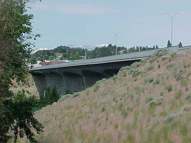 US 2 has crossed the bridge since 1975. Before the Obidasian Bridge was completed, US 2 crossed the Columbia River south of downtowns Wenatchee and East Wenatchee on a 1950 vintage four lane bridge. The 1950 bridge is now part of SR 285. The Obidasian Bridge shortened US 2 by 7 miles. US 97 was added to the Obidasian Bridge in 1987 when US 97 was switched to the watergrade route from Olds Station to Hugo. The bridge was named for Richard Odabashian in 1991 by the State Transportation Commission. Mr. Odabashian had been a member of the Commission for 12 years and had seved as Commission Chairman part of that time. The pedestrian-bicycle path on the downstream side of the bridge was widened circa 2001 by cantilevering the path off the side of the bridge.