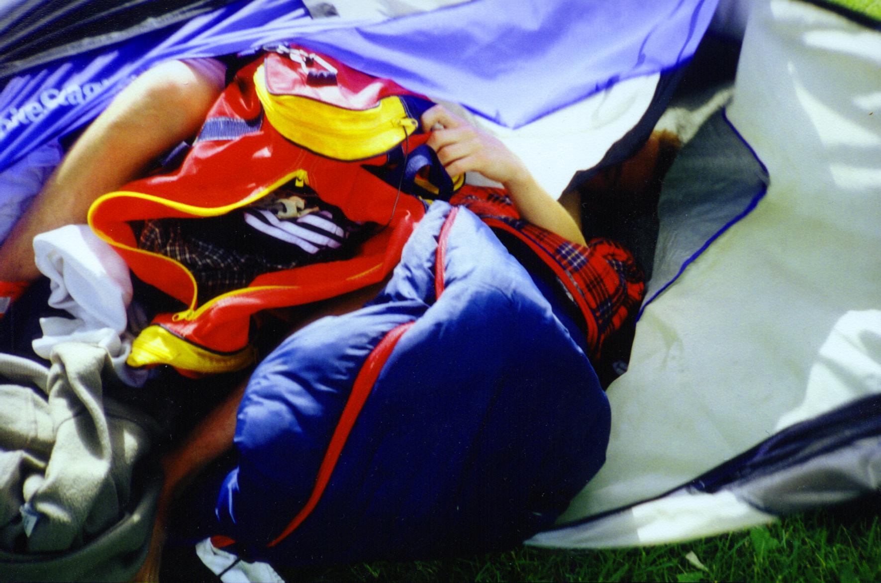 Here's a picture taken of Tim right after we took his tent down. (He was in the tent when we took it down.)