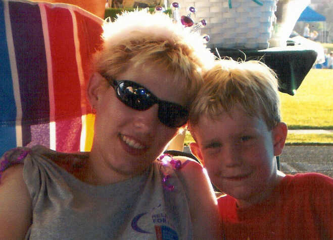 Mom and I waiting for the first lap, the cancer survivor's lap, to start. Go us!