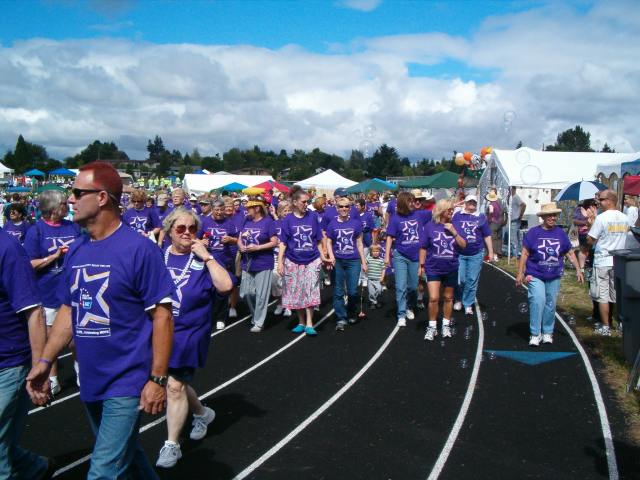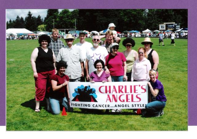 Team Banner Lap My awesome cousin Katie (with the connections..) got us our very own banner, so this year we walked in the banner lap. Our banner kicks major booty! Go Charlie's Angels (just dont give us real guns, some people cant aim well, just look at the photo...)