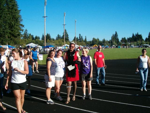 Miss'ter Relay A new event this year, was the Miss'ter relay contest. Guys dressed up, then walked the track for donations. Most donations won! We managed to get a photo with one of the "ladies"