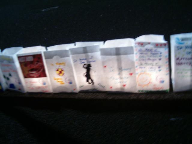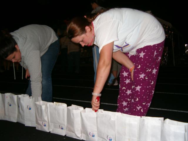 Lighting our luminaria's Michelle making handy use of the lighter to get our luminaria's lit!
