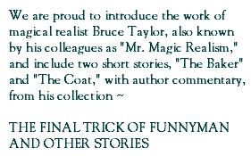 "The specialty of Bruce Taylor is brief, playful, bizarre stories