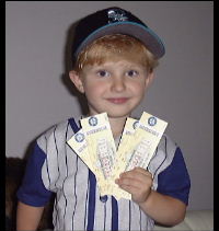 First you have to get some tickets to the game. My Dad got these from his boss at work. Tell your Dad he can get some from his boss too, he just needs to do a little "brown nosing".