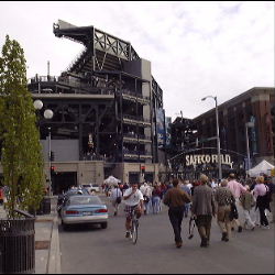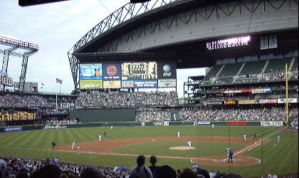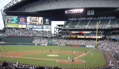 Make sure you leave early enough to see the first pitch. We have a new stadium in Seattle and it is called Safeco Field. It has a retractable roof that they can put over the field if it is raining.
