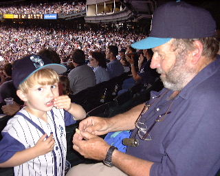 There is always good food to eat. My Grandpa says that it wouldn't be baseball without peanuts and beer. I like peanuts and my Grandpa helps me get them out of the shell.