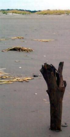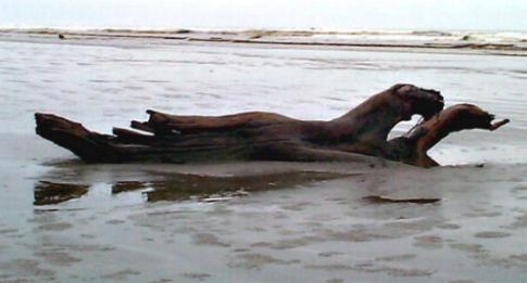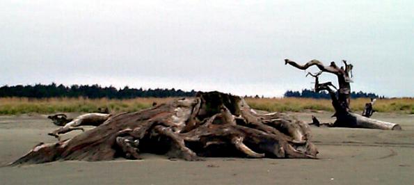 driftwood on the beach.