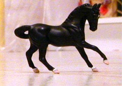 Breyer Classic Andulusian colt done by Carly. Dark bay Trakehner w/ 2 socks and a snip. Repainted and glossed. Picture soming soon!