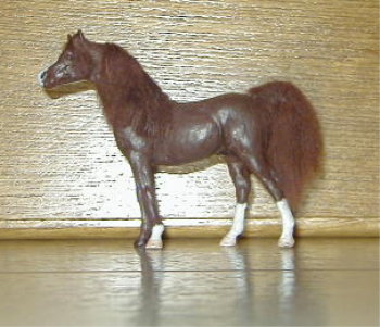 Breyer Stablemate Morgan gelding done by Caroline. Chestnut Welara (Welsh x Arab) w/ 4 socks and a blaze. Leg Repostioned, repainted. My (Caroline) first attempt at customizing! Picture coming soon!