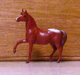 Breyer Stablemate Morgan mare done by Carly with slight detailing by Caroline. Chestnut blanket Appaloosa mare w/ a blaze and striped hooves. Repainted.