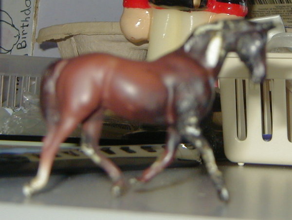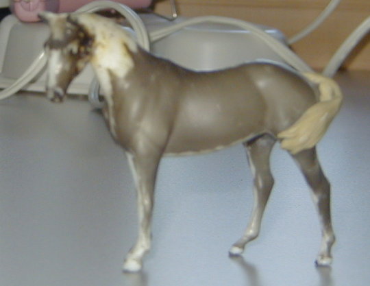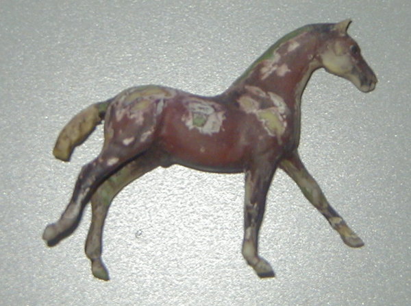 for this guy because he is little - so both his front legs, one ear, and his new back feet all were broken off. If I ever get him back together, he will be a chestnut overo paint stallion.