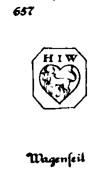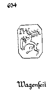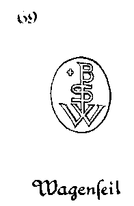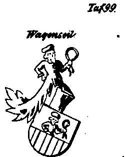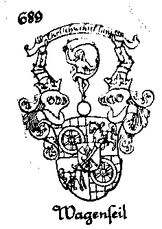 Otto Titan von Hefner: "Zweitausend bürgerliche Wappen", Band 5, Teil 2 von Johann Siebmacher: "Großes und allgemeines Wappenbuch", Leipzig: Bauer und Raspe, 1873, Tafel 99: "Wagenseil, bürgerliches rathsfähiges Geschlecht in Nürnberg, um 1550 - W: von S. und B. getheilt. Oben in S. ein b. Mann, wachsend, ein g. Seil in der Hand, Unten drei g. Pfähle. - K: Der Mann mit dem Seil. - D: b, s".