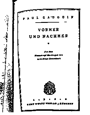 Paul Gauguin: "Vorher und Nachher", aus dem Manuskript übertragen von Erik-Ernst Schwabach, München: Kurt Wolff 1920, S. 13: