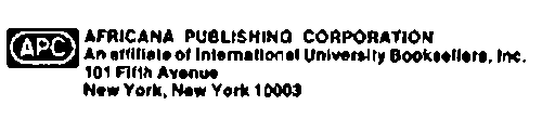 Abb. Aufdruck "[Logo APC] // Africana Publishing Corporation / An affiliate of International University Booksellers, Inc. / 101 Fifth Avenue / bew York, New York 10003", Rückseite von M.J. Holmes unf G.J. Meier: "Africana Publishing Corporation. Complete Catalogue 1969", New York: APC 1969, 1st edition, Ovtavo.
