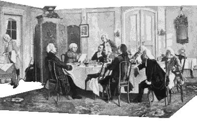Abb. Emil Doerstling: "Kant und seine Tischgenossen", um 1892, Public Domain (modifiziert).