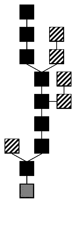 Abb. "Blockchain. The main chain (black) consists of the longest series of blocks from the genesis block [straight stripes] to the current block. Orphan blocks [diagonal stripes] exist outside the main chain", von Theymos from Bitcoin wiki / Razorbliss unter Creative-Commons-Lizenz CC BY 3.0 (modifiziert). "Das Konzept der Blockchain als verteiltes [d.i. dezentrales] Datenbankmanagementsystem wurde erstmals 2008 von einer Person oder Personengruppe unter dem Pseudonym Satoshi Nakamoto im White Paper zu Bitcoin beschrieben" (WP). Vgl. kritisch zur Rezeption solcher "Kryptowährungen" Ana Teixara Pinto: "Ironie und Alt-Right. Die transgressiven Masken des neoreaktionären Technofutuismus", in: "Springerin", Nr. 4, Wien, Herbst 2017, S. 12-14; David Golumbia: "The Politics of Bitcoin. Software as Right-Wing Extremism", Minneapolis: University Of Minnesota Press, 2016; Andrew Jones: "The Alt-Right Revolution in the Early 21st Century", Geopolitical Economy Research Group (GERG; "will be an influential policy research institute, conducting high quality research and analysis dealing with nations and their relation to the world economy"), September 2017.