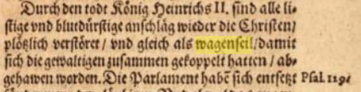 Josef Hemmerle: "Quellen und Studien zur Geschichte des Deutschen Ordens", Band 22, Bonn: Verl. Wiss. Archiv, 1967, S. 119: "Item 4 wegen mit allem geret , 3 setel , 4 wagenseyl", S. 135: "5 newer wegenzyl und 3 alde, 3 cleyne ardeyzen", S. 192 (Register): "wagenseil, wagenseyl, wegenzyl, Wagenseil 215, 254, 276, 294, 295, 337, 347, 351, 387, 413".
