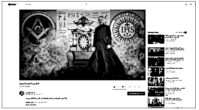 geschwärzten Papst, der das 'Böse', 'Heidnische' repräsentiert, dargestellt durch altägyptische Kulturinsignien im Hintergrund. Eines der Videos, die Youtube als ähnlich listet [das unterste], hat ein Vorschaubild mit Davidstern: 'Französischer Kanal zeigt Freimaurer-Einfluss in modernen islamischen Liedern' heißt der Titel übersetzt (2011)".