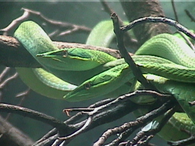 A great zoo with a lot of great exhibits to see. Now they have a baby elephant and gorilla to add to the other great displays. For more fun, when the picture says "mouse me!", pass your mouse cursor over the picture and watch what happens. Nap time for the gorilla family Hansa the baby elephant. mouse me! Hansa with mom. How do you like my new hairdo? If you don't, then mouse me! Ocelot enjoying a Sunday afternoon. Green tree snakes Posing for pictures. Who said that? A beautiful bird - Tahoma mouse me!