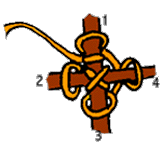 - Begin wrapping the sticks in a figure 8, then without tying off the yarn, and going clockwise, wrap the long end of the yarn under #1, around the stick, under #2, around that stick, under #3, etc.