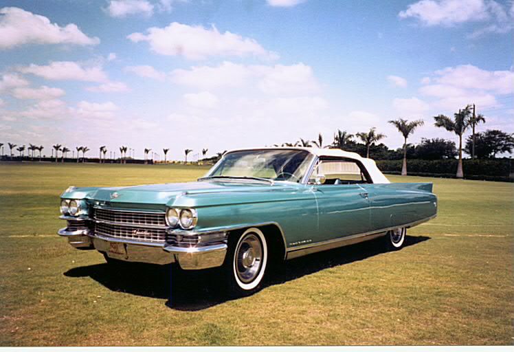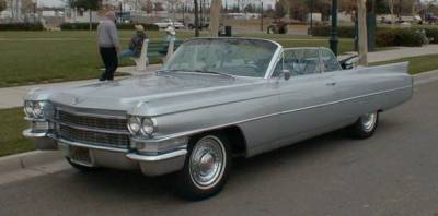 1963 Information: In general terms, 1963 Cadillac's were essentially the same as the previous years models. Exterior changes imparted a bolder and longer look. Hoods and deck lids were redesigned. The front fenders projected 4-5/8 inches further forward than in 1962, while the tailfins were trimmed down somewhat to provide a lower profile. Body side sculpturing was entirely eliminated. The slightly V-shaped radiator grille was taller and now incorporated outer extensions that swept below the flush-to-fender dual headlamps. Smaller, circular front parking lights were mounted in these extensions. A total of 143 options set an all-time record for interior appointment choices. Standard equipment for cars in the 62 Series (6200 models) included power brakes; power steering; automatic transmission: dual backup lamps; windshield washers; dual speed wipers; wheel discs; remote control outside rear view mirrors; left hand vanity mirror; oil filter; five tubeless black tires; heater; defroster and cornering lights.