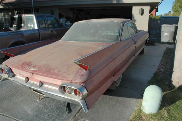 61 Caddy Coupe. It's definitely a project car. For the most part everything is all here though. It's here in the Palm Springs area, so it's a desert car, however it does have some rust. Email owner at greg@andradedesign.com |