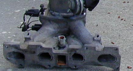 The KNOCK sensor on this older style intake is the grey sensor located in this pic pointing down.