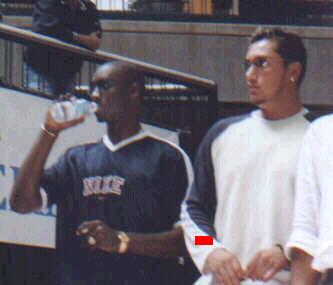 He looks corky standing there all by himself. Maybe because his intials are, "F.A.G." All the guys don't want to stand by him and talk to him?