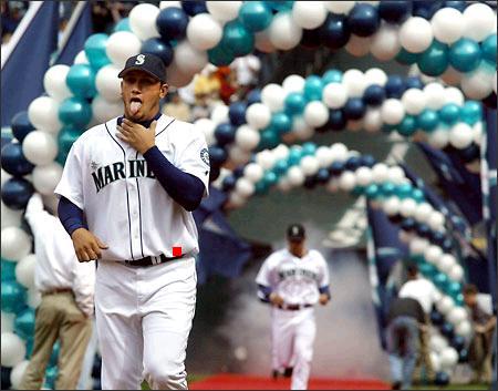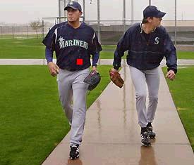 This is Freddy pulling a Carlos Guillen. Remember last year when Carlos got pulled over for a DUI? I bet they made him walk in a straight line... well that's what Freddy's doing, he's practicing walking in a straight line just like his best buddy had to.