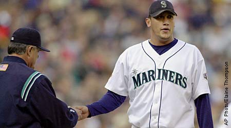 here's home boy opening day 2002.... his hand kinda looks funny and he looks like he just ate a lemon!