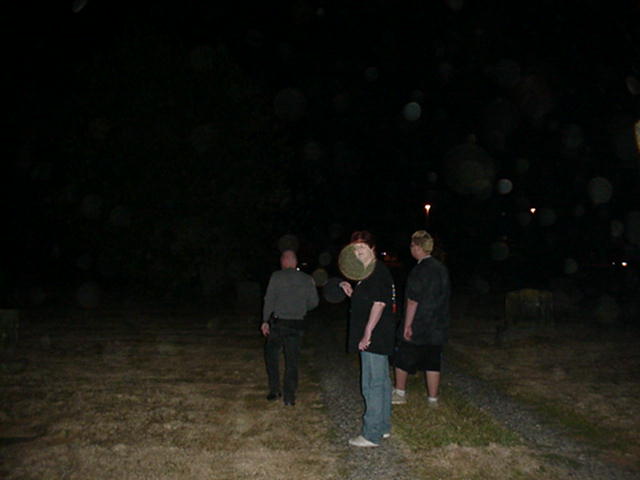 Joe, Chris and Kevin are surrounded by orbs in Brush Prairie Cemetery 8-20-01.