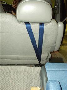 The 1st picture on the right was taken in a 1998 Buick Century sedan . The connector strap is wrapped around the metal section of the seat belt stalk. The metal piece I attached it to; is immobile and bolted to the vehicle. It also does not interfere with the seat belt track. A passenger in the front seat, may move their seat forward and backward without interfering with the tether connector strap. |