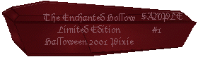 This is my adopted 2001 pixie! Enchanting, isn't she? If you have love enough to adopt your own, just click on her coffin, (certificate) to be transported to the Enchanted Hollow!