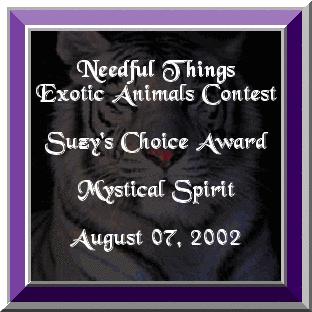 Thank you Suzy for your choice award for my Exotic Animal Sig. It is an honor to have my sig as your favorite choice