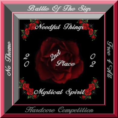 I want to dedicate this page to all those that make our signature contests happen. All the Award Creators, Judges, NG staff members, Ng Mods and a special thanks to all my Fellow Peers that I enjoy competing with each and every contest. Most of all a huge thanks to all that have felt my sigs were worthy of their votes. I put alot of time, passion and heart into the sigs I make.