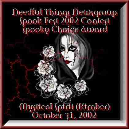 Thank you Suzy and all that voted for my Halloween Sig at Needful Things!! Suzy makes the bomb awards!