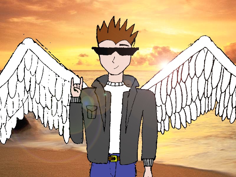 This is my first character I colored. I just took an old drawing to test Adobe photoshop with. I got the background from webshots.com. I think I will color more old drawings like this.