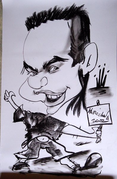 This is a drawing a guy made for me in Barcelona for 15 Euro. The guy in the picture should resemble me. He doesn't really look like me, but he does look kinda cool. The picture was to big for the scanner, so I made a photo from it with the digital camera.