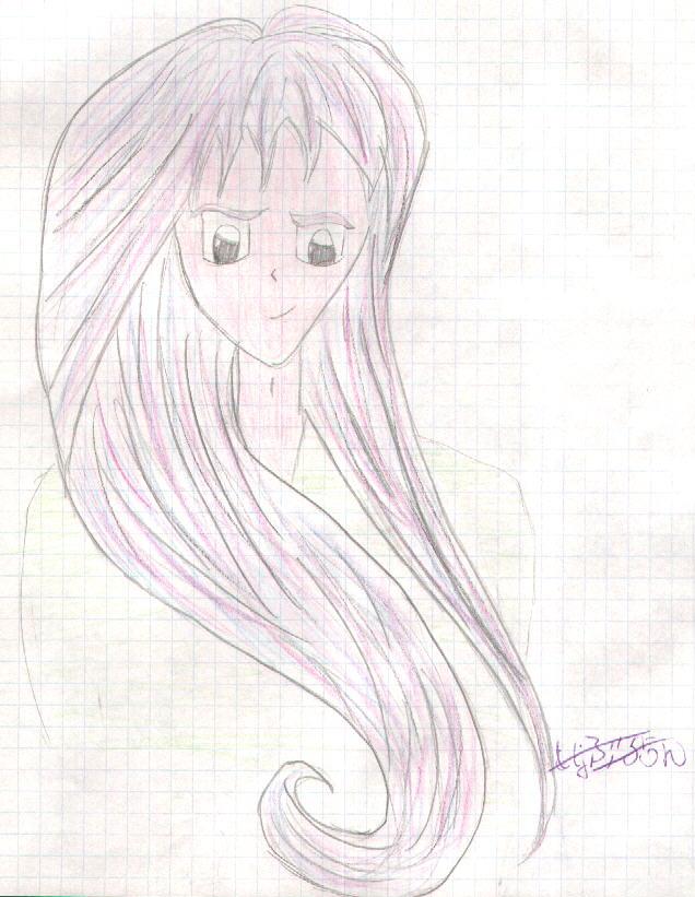This is a drawing from my sister from a girl with purple hair, she kinda reminds me like Jesse from Pokémon.