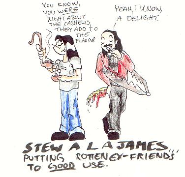 It’s hard to make out on first sight, but that’s glasses hanging out of the stew, idea courtesy of one of my bestest best pals, Chris, who actually pointed me to "Ravenous" in the first place.