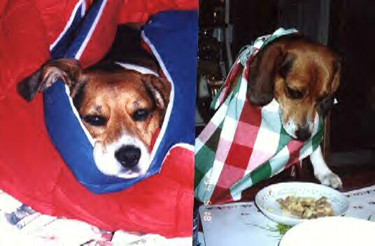 This is my beagle Jimmy.. These are two pics.. The left one is him sleeping (he loves entangling himself in both of his comforters.) The second is him looking at the food he's about to devour. I just love the second picture, he's so cute.. And he doesn't look square. Let me tell you, Jimmy is literally square shaped, he's THAT fat.. All those who've seen him have been in awe. Poor dog... Yep, he's on a diet:)