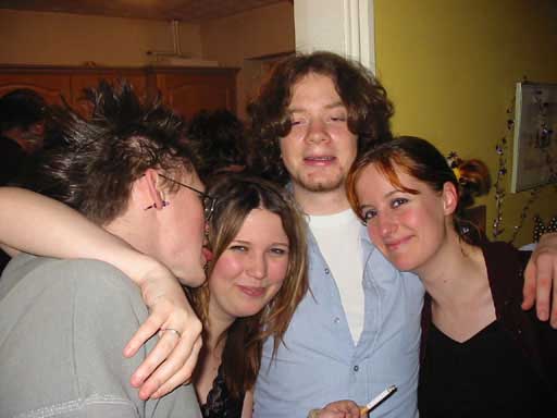 ![]() Tuesday, 31st December 2002, and we all find ourselves at Lucy Allen's New Year's Eve house party. This is at 10pm...! ![]() Denver, with George Randerson's nipple in the background. Wow that is one manky tougue - I wonder what Liz thought of it...? ![]() Dreadlock Dave ![]() From left to right, yvonne (again, sorry- another correction) , and her sister Kaye - (yes kay with an e), and Seb. ![]() George Randerson. I should really find out how the red eye reduction works on my camera... ![]() A great picture of Chris Drury! And he is still adamant that he takes no substances of any kind! ![]() Bun Shuker - If you're reading this you still owe me a fiver ![]() A very framable picture of the legendary South African, the one, the only... Clinton Mason ![]() I believe we've seen this one before...From left to right, we've got George Randerson, happily licking Lucy Allen, followed by an equally happy Seb Jones, with a somewhat smug looking Bryony Anderson on the end. ![]() Clinton, and his mysterious friend talking to Patrick White. Does anyone know who this guy is? I think I saw him working in that barrel shop in Stratford?? |